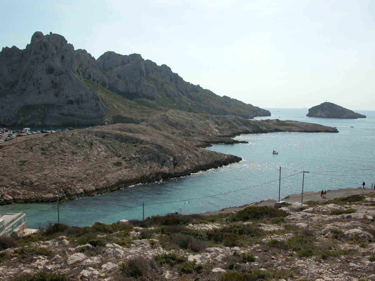 les īles de Maļre et de Tiboulen et dans le lointain l'īle et le phare du Planier