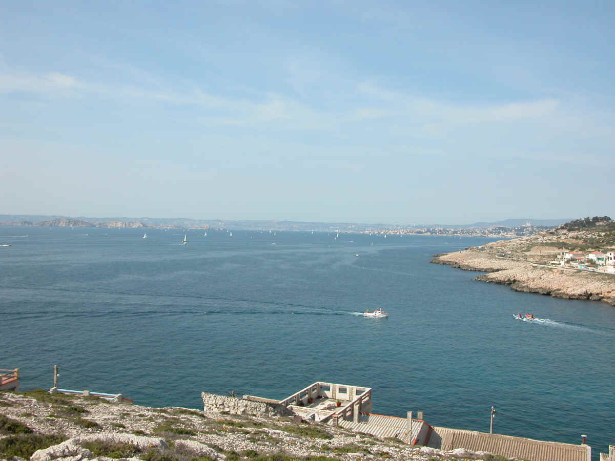 la baie de Marseille - les îles Prioul - dans le lointain Notre Dame de la Garde